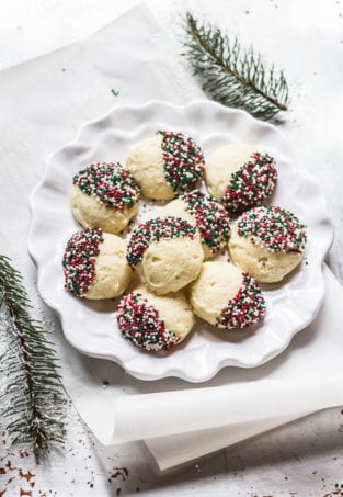 These look so festive, and they sound delicious … I’m so curious about the fiori de sicilia flavouring too! It sounds beautiful. My favourite Christmas cookie was always my mother’s shortbread – they were so buttery and it was much too easy to eat a dozen haha… another favourite are peanut butter balls (I think other people call them “Buckeyes”). I haven’t really tried my hand at gluten free and dairy-free Christmas cookies but this might be the year to start!