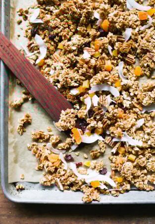 - If you prefer a more toasted flavor, toast the nuts and coconut separately and add to the granola at the end.